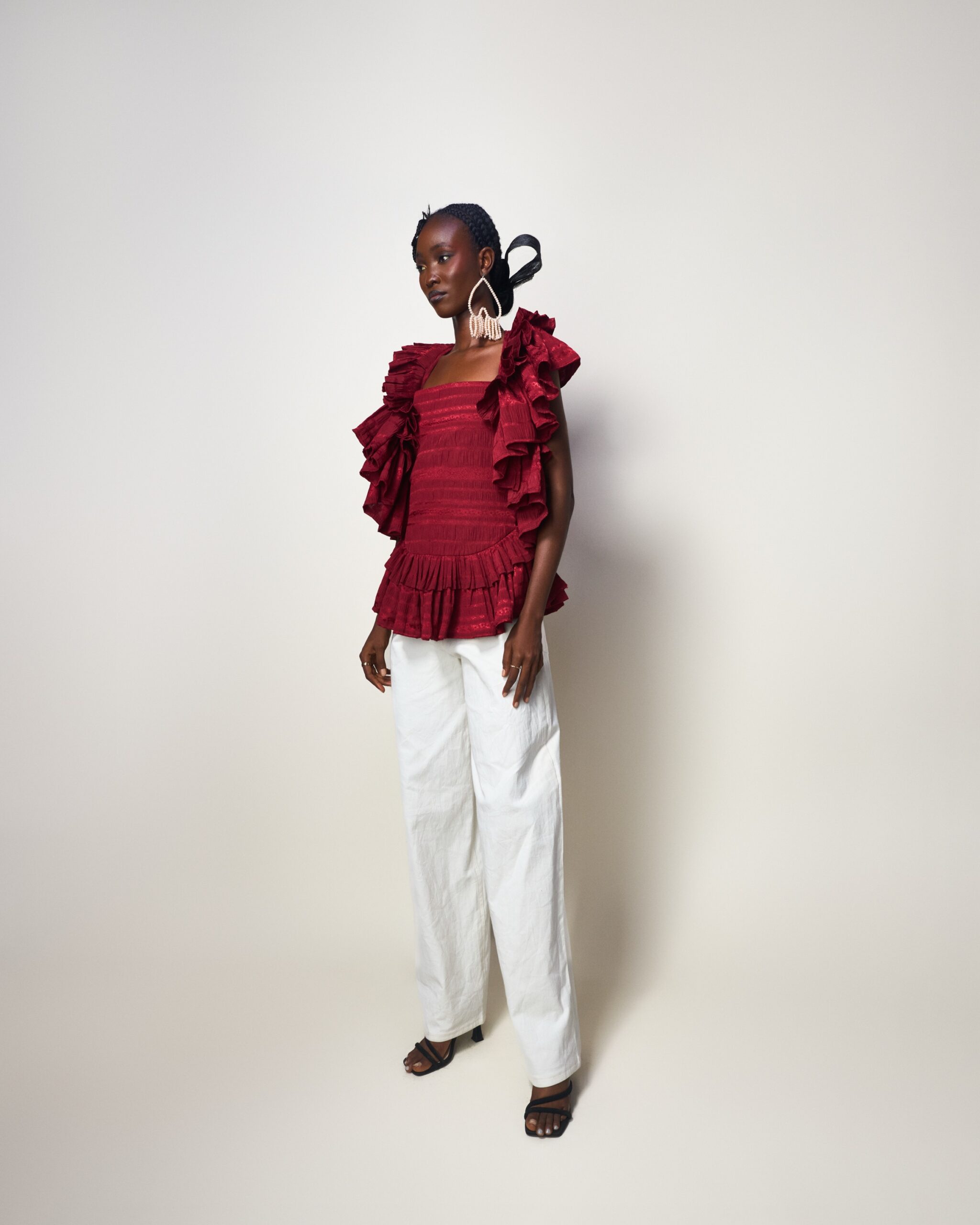 Ruffled Halter Top₦200,000.00 Size Choose an option101214162022468Clear Ruffled Halter Top quantity Add to cart SKU: N/A Categories: Collection 008, Dresses, Fashion, New in, Women Description Additional information Reviews (0) Description Halter with cascading front ruffles. Low open back for feminine fluidity. colour: red Dry Clean only This garment was created entirely out of dead stock fabric. Additional information Size 10, 12, 14, 16, 20, 22, 4, 6, 8 Reviews (0) Reviews There are no reviews yet. Be the first to review “Ruffled Halter Top” Cancel replyYour email address will not be published. Required fields are marked *Your rating * Rate… Perfect Good Average Not that bad Very poor Your review *Name * Email * Save my name, email, and website in this browser for the next time I comment.